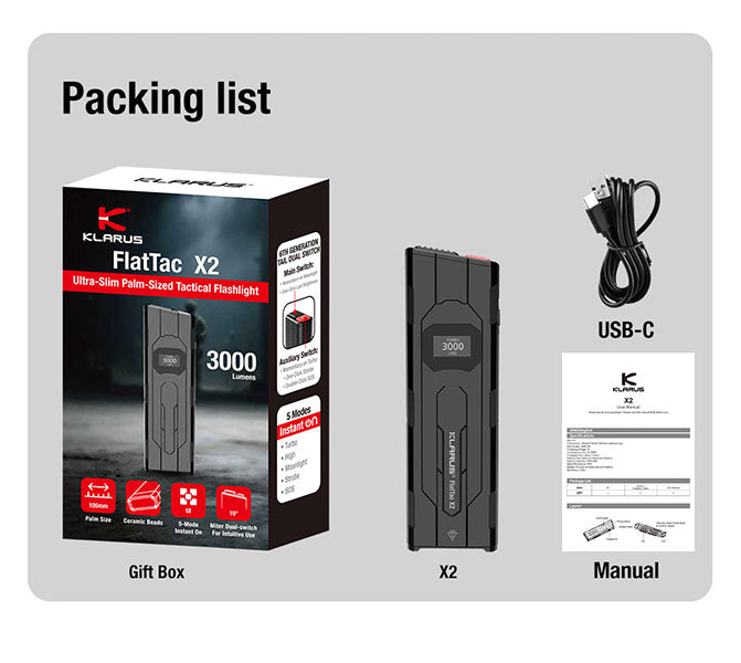 Rechargeable USB-C en seulement 1 heure via charge rapide directe, la Klarus FlatTac X2 est l'outil tactique idéal pour forces de l'ordre, militaires, agents de sécurité et professionnels de l'intervention exigeant un équipement compact, puissant et fiable.