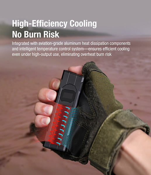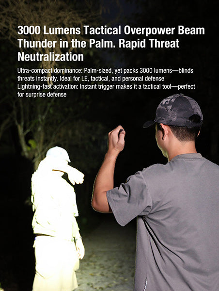 La lampe propose 5 modes d'éclairage adaptés à toutes les situations tactiques : mode Turbo pour neutralisation rapide des menaces, mode High pour éclairage intensif, mode Moonlight pour préservation de la vision nocturne, mode Strobe pour désorientation tactique, mode SOS pour signalisation d'urgence et mode beacon pour signaler sa position. Son système de refroidissement haute efficacité avec composants de dissipation thermique grade aéronautique et contrôle intelligent de température élimine les risques de surchauffe.